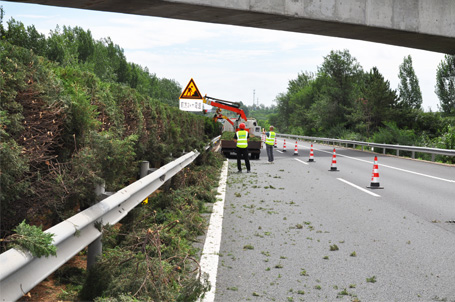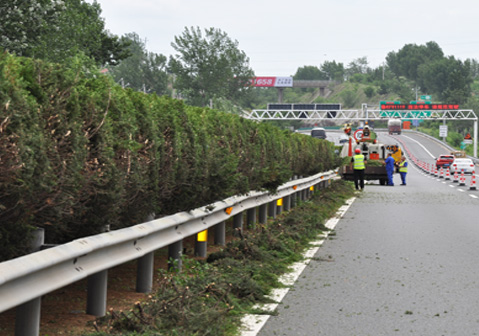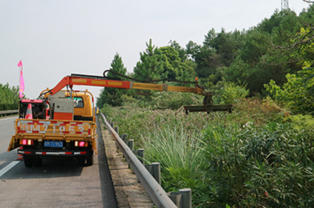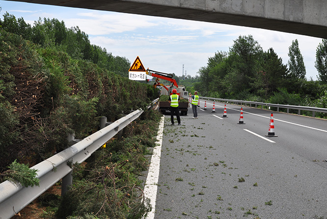 使用1.8吨轻卡承载,可修剪中分带绿、公路右侧高枝粗枝: