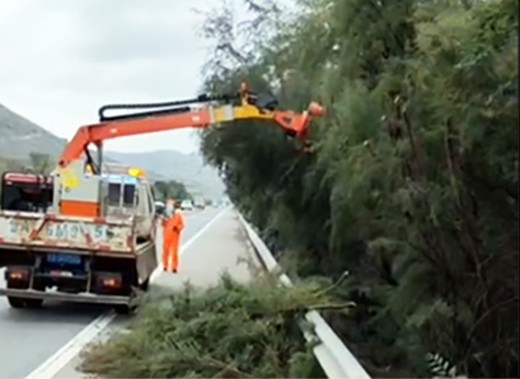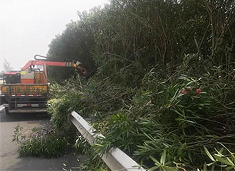 使用1.8吨轻卡承载,可修剪中分带绿、公路右侧高枝粗枝: